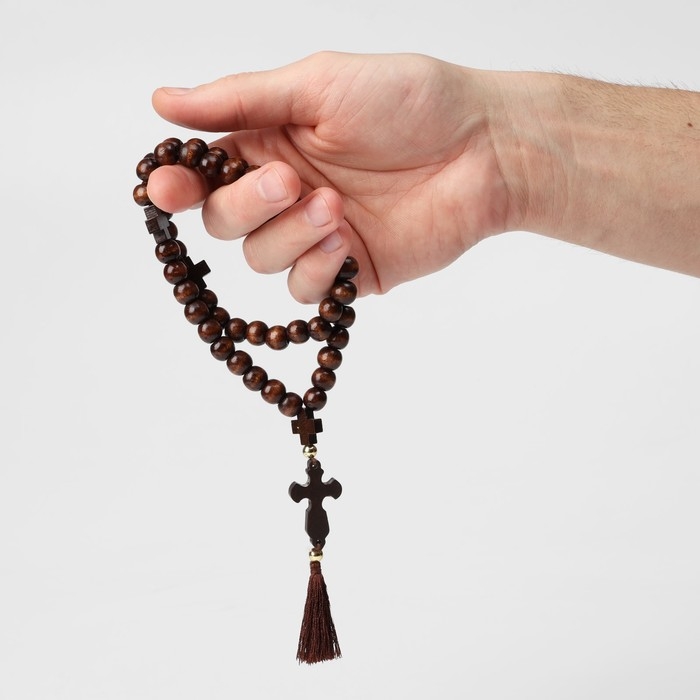 Чётки деревянные «Православные» с крестиком, кисть, 33 бусины, цвет коричневый