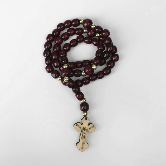 Чётки деревянные «Православные» 33 бусины с крупным крестом, цвет вишнёвый