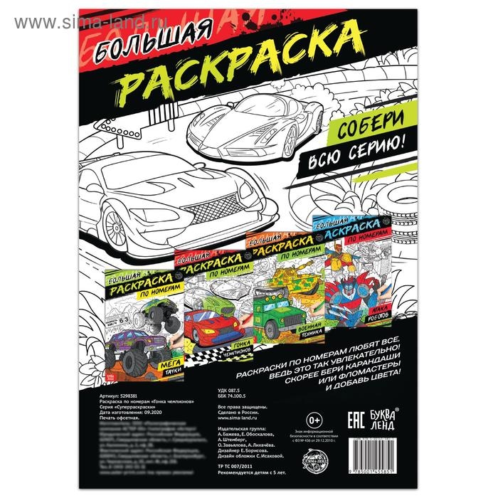 Раскраска по номерам «Гонка чемпионов», 16 стр., формат А4