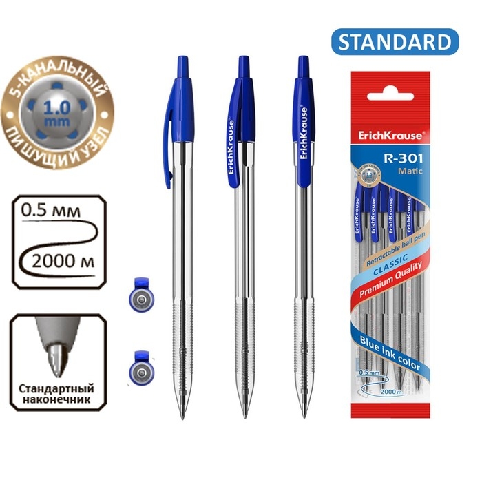 Классическая автоматическая шариковая ручка Matic со стандартным типом пишущего узла и заменяемым стержнем.