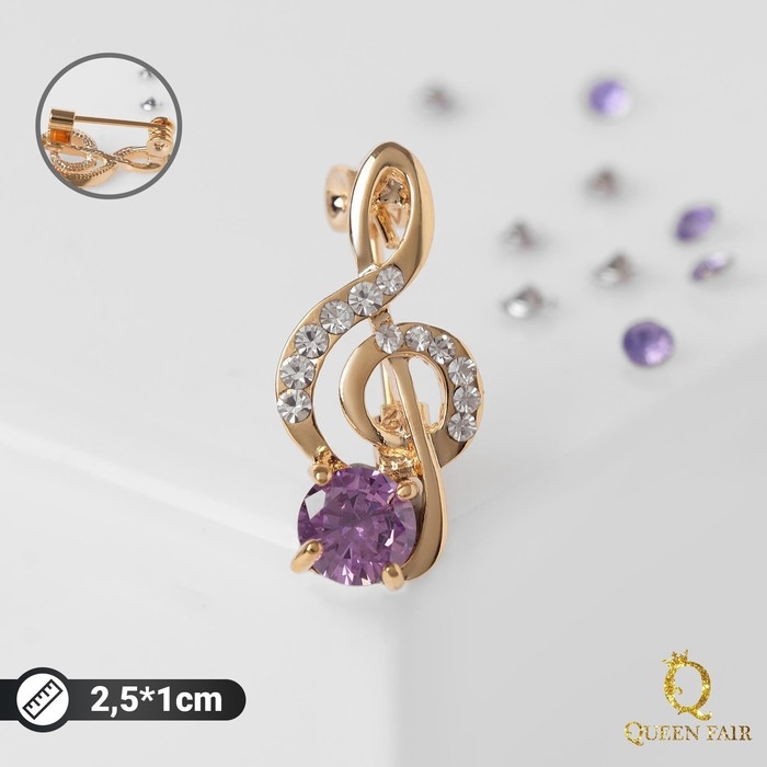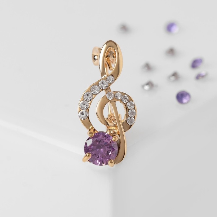 Брошь «Скрипичный ключ» мини, вдохновение, цвет бело-фиолетовый в золоте
