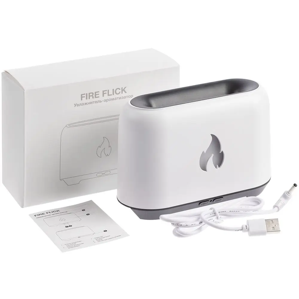 Увлажнитель-ароматизатор Fire Flick с имитацией пламени, белый