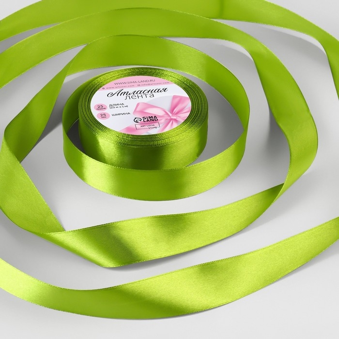 Лента атласная, 25 мм × 23 ± 1 м, цвет фисташковый №65