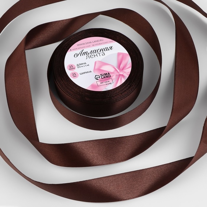 Лента атласная, 25 мм × 23 ± 1 м, цвет шоколадный №31