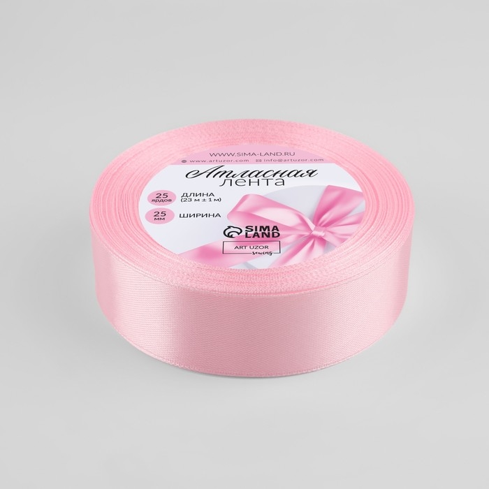 Лента атласная, 25 мм × 23 ± 1 м, цвет пастельно-розовый №43