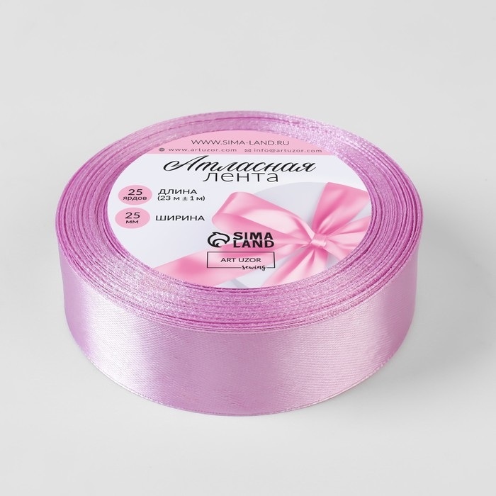 Лента атласная, 25 мм × 23 ± 1 м, цвет тёплый сиреневый №45