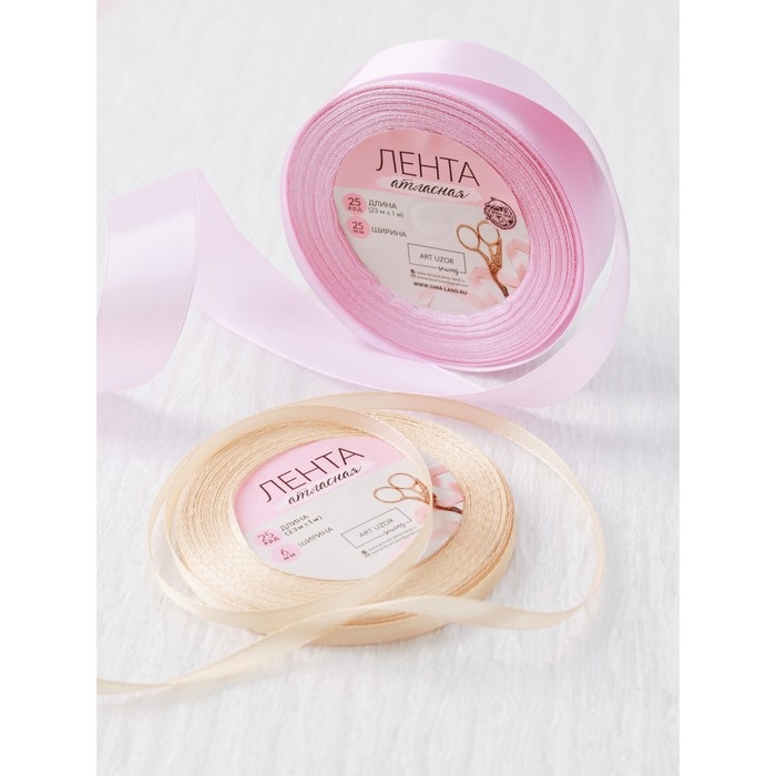 Лента атласная, 25 мм × 23 ± 1 м, цвет белый №01