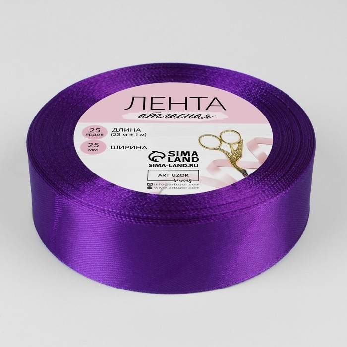 Лента атласная, 25 мм × 23 ± 1 м, цвет фиолетовый №34