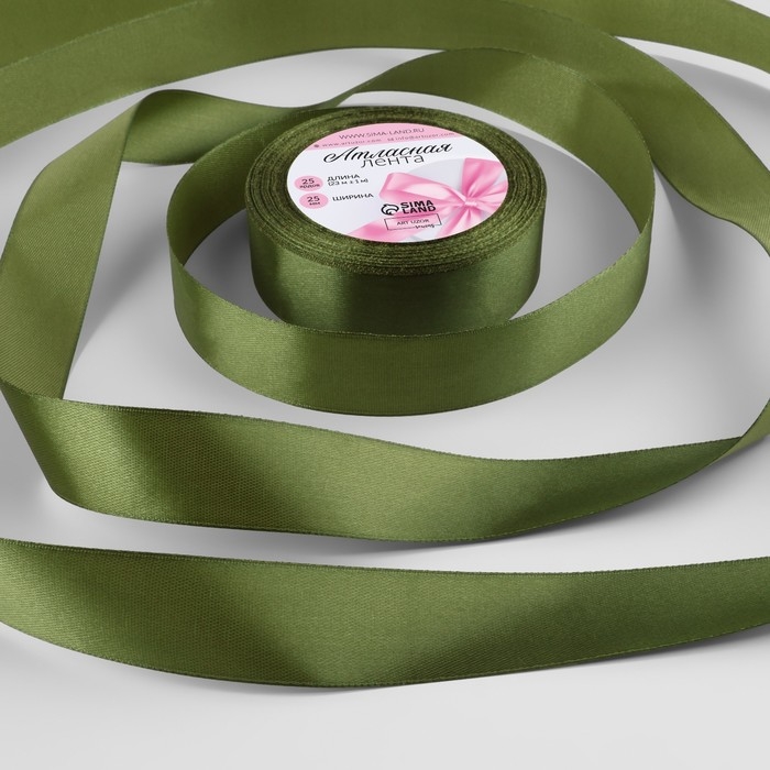 Лента атласная, 25 мм × 23 ± 1 м, цвет травяной №113