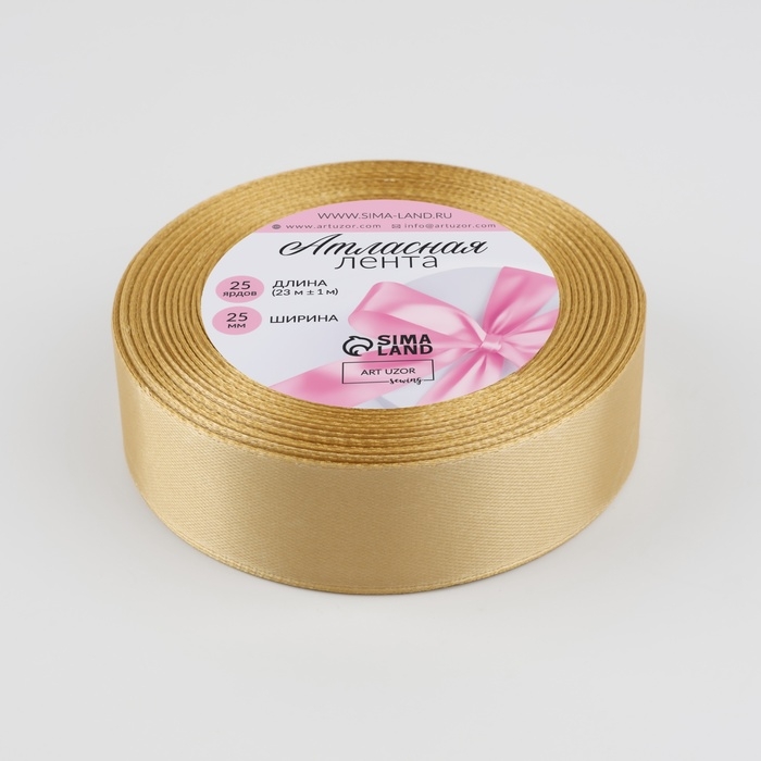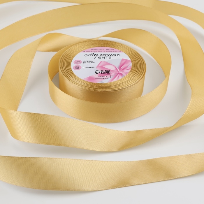 Лента атласная, 25 мм × 23 ± 1 м, цвет золотисто-бежевый №186