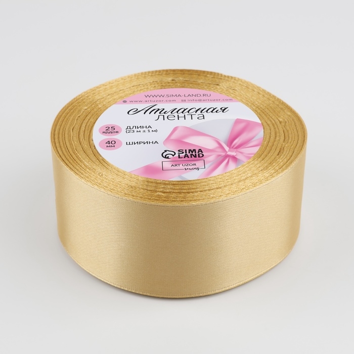 Лента атласная, 40 мм × 23 ± 1 м, цвет золотисто-бежевый №186