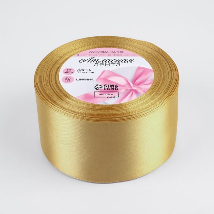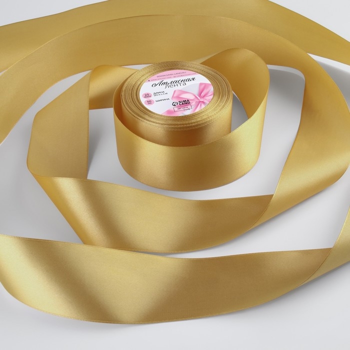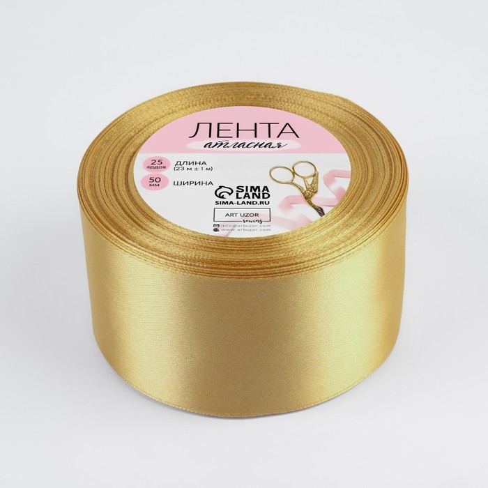 Лента атласная, 50 мм × 23 ± 1 м, цвет золотисто-бежевый №186