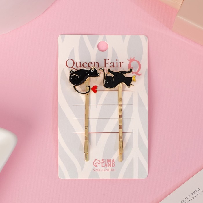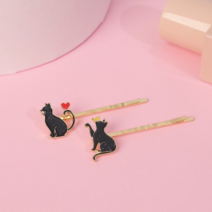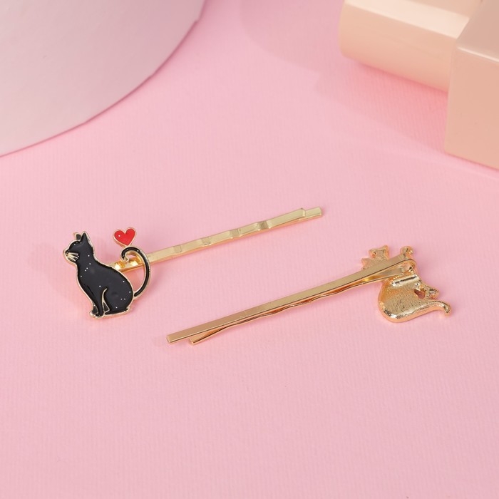 Невидимка для волос "Влюблённые кошечки" (набор 2 шт) 5 см, золотисто-чёрный