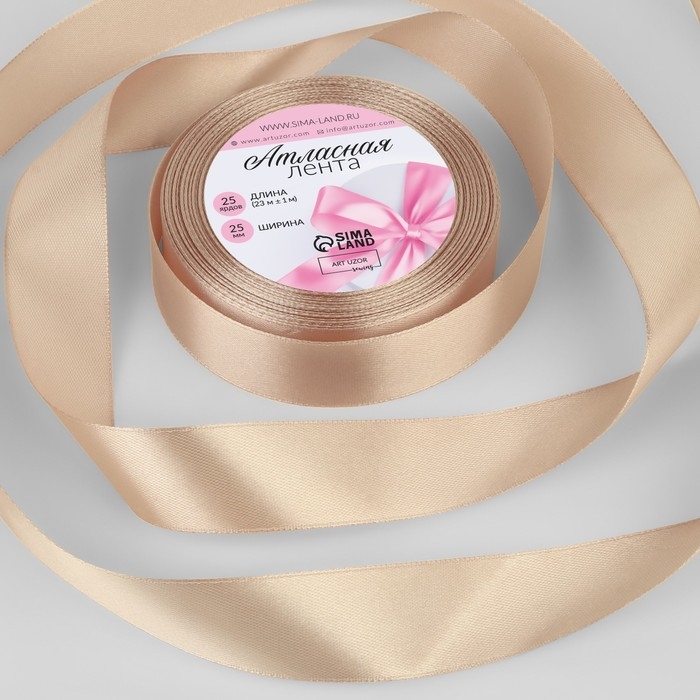 Лента атласная, 25 мм × 23 ± 1 м, цвет бежевый №267