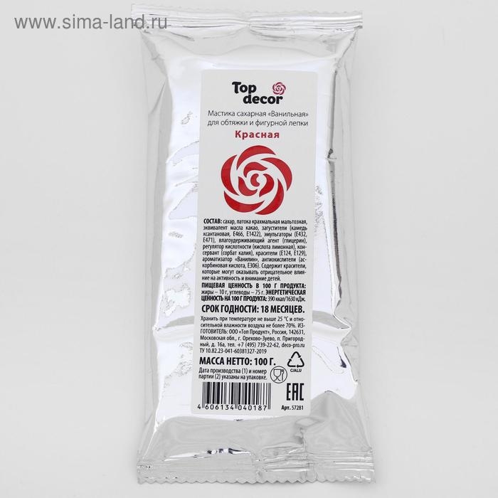Мастика сахарная, ванильная, красная, 100 г