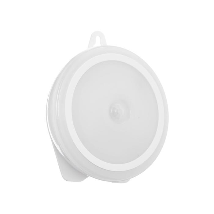 Светильник светодиодный с датчиком движения, 6LED, 2,5 Вт, от батареек 3*AAA, 3000К, т-белый