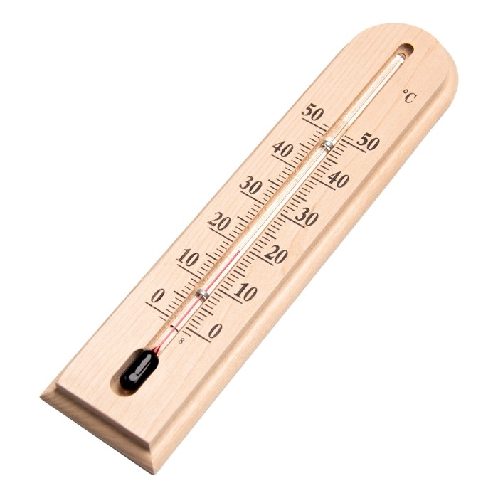 Термометр сувенирный комнатный на деревянной основе. Предназначен для измерения температуры воздуха в помещении. Диапазон измерения: от 0° до +50°C; Цена деления шкалы: 1°C. Изготовлен без применения ртути.