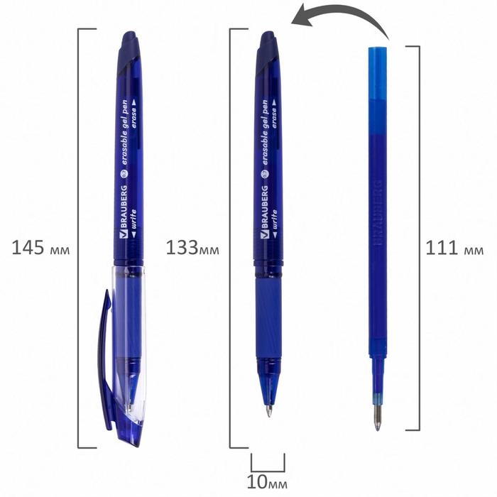 Ручка со стираемыми чернилами, гелевая, BRAUBERG "X-ERASE" 0,7 мм, грип, корпус синий, синие чернила