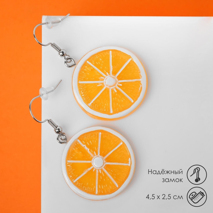 Серьги пластик «Вкусности» апельсин, цвет оранжевый