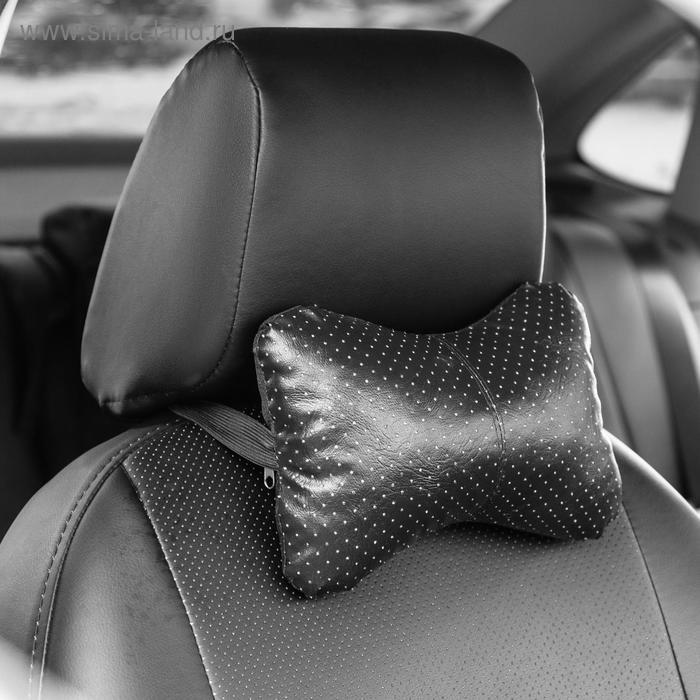 Подушка автомобильная косточка, на подголовник, экокожа перфорированная, чёрный 16х24 см