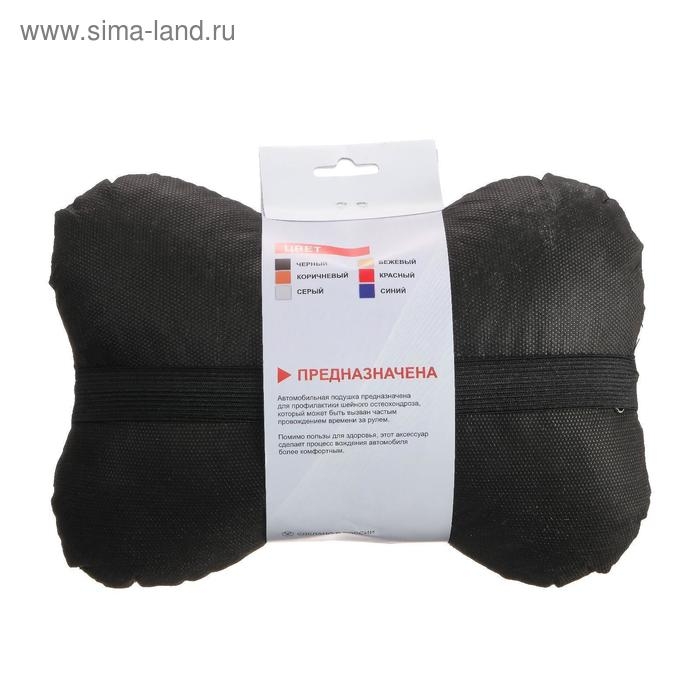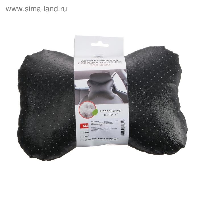 Подушка автомобильная косточка, на подголовник, экокожа, чёрный, 16х24 см