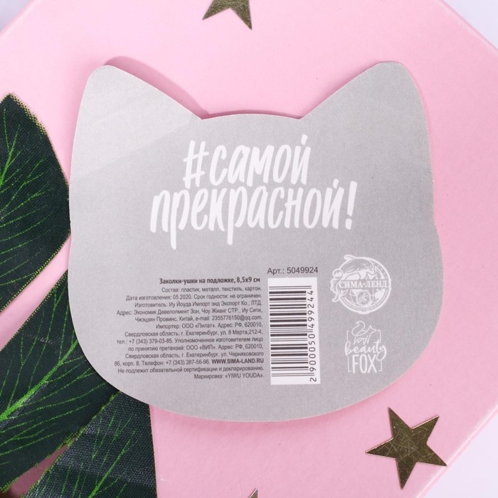 Заколки для волос ушки «Моей кошечке», 2 шт, 5 х 5 см