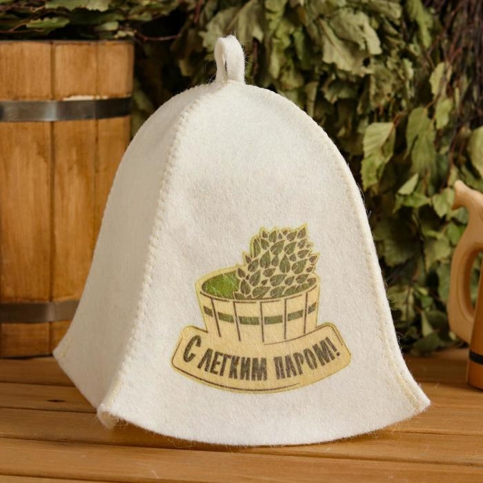 Шапка для бани "С легким паром" с принтом, белая