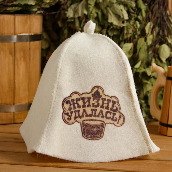 Шапка для бани "Жизнь удалась" с принтом, белая