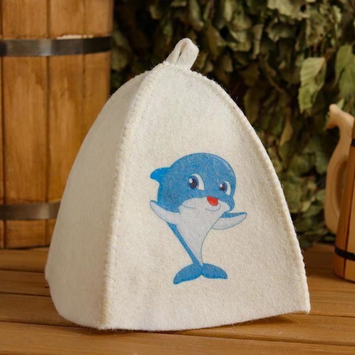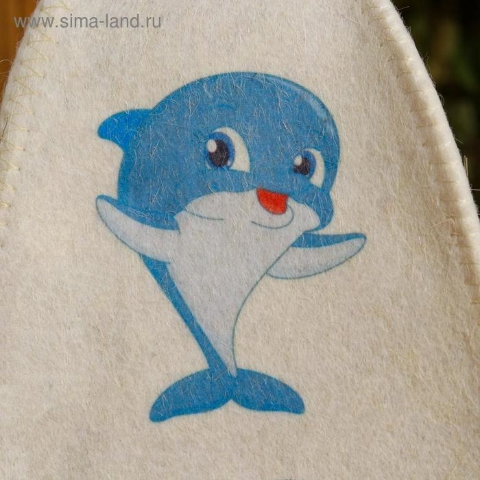 Шапка для бани с детским принтом "Дельфин" , белая