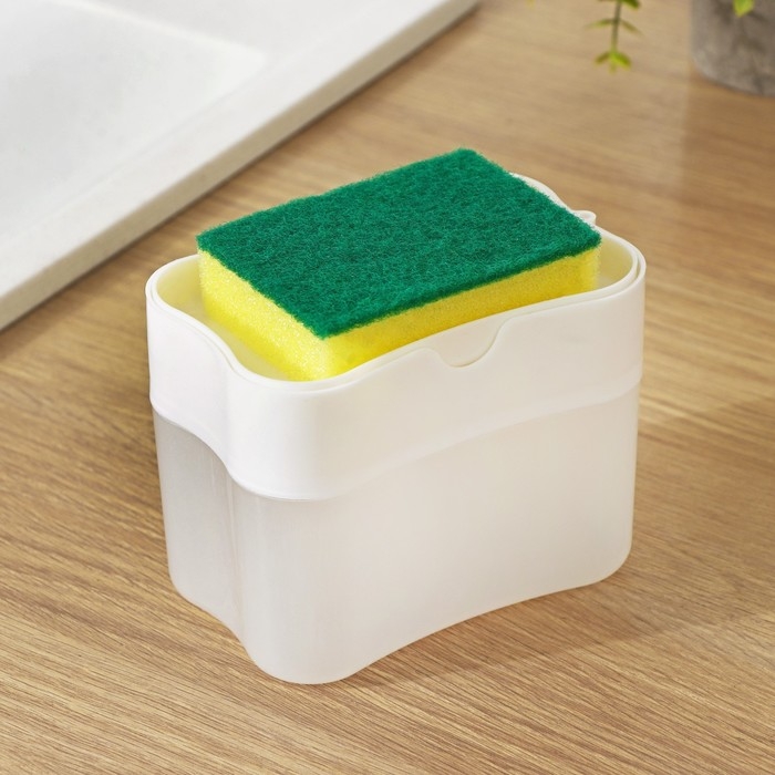 Дозатор для моющего средства с подставкой для губки Доляна, губка в комплекте, 385 мл, цвет белый