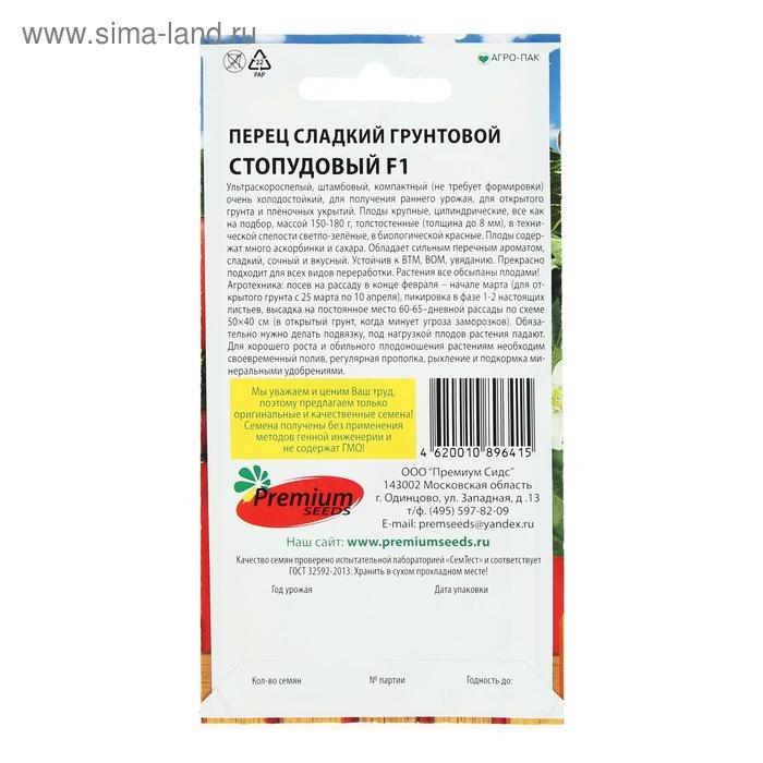 Семена Перец сладкий грунтовой "Стопудовый", F1, 0,08 г