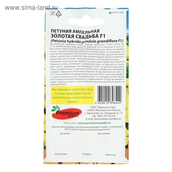 Семена цветов Петуния ампельная "Золотая свадьба",F1, 7 шт