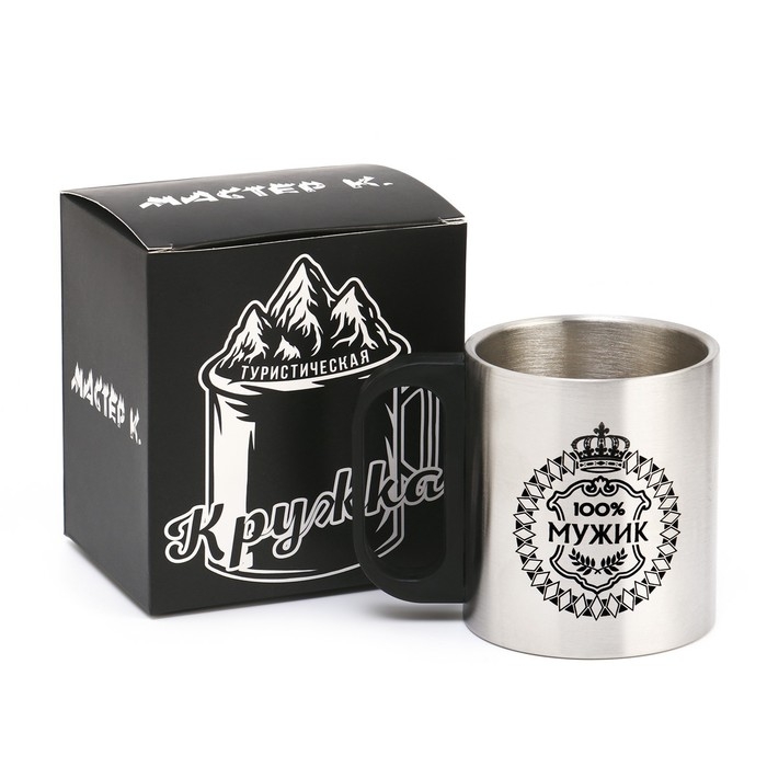 Термокружка, 180 мл, Туризм "Мастер К.100 % Мужик", сохраняет тепло 2 ч, 7 х 9.5 см