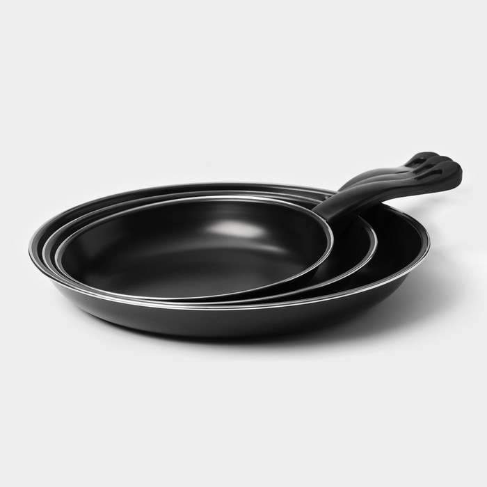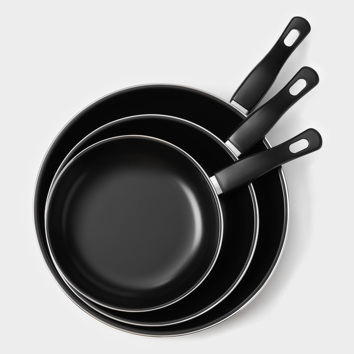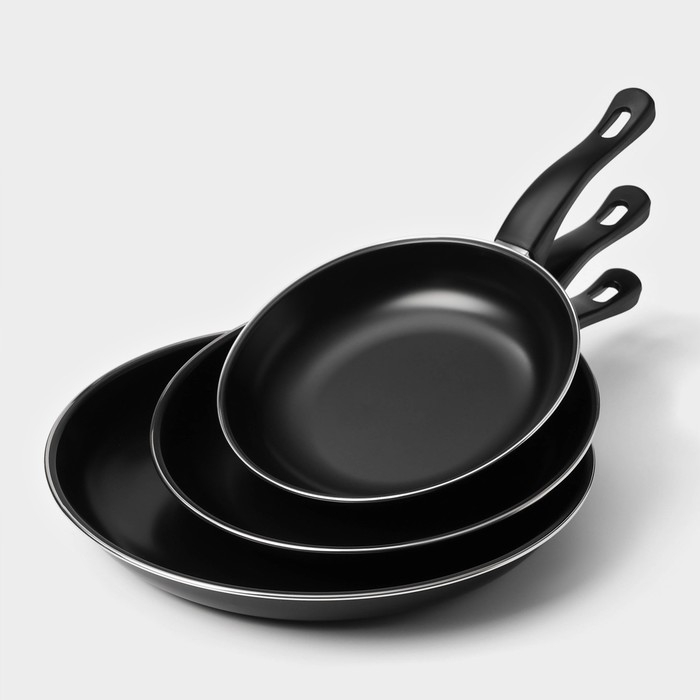 Набор сковород «Жаклин», 3 предмета: 20/25/30×4 см, антипригарное покрытие, цвет чёрный