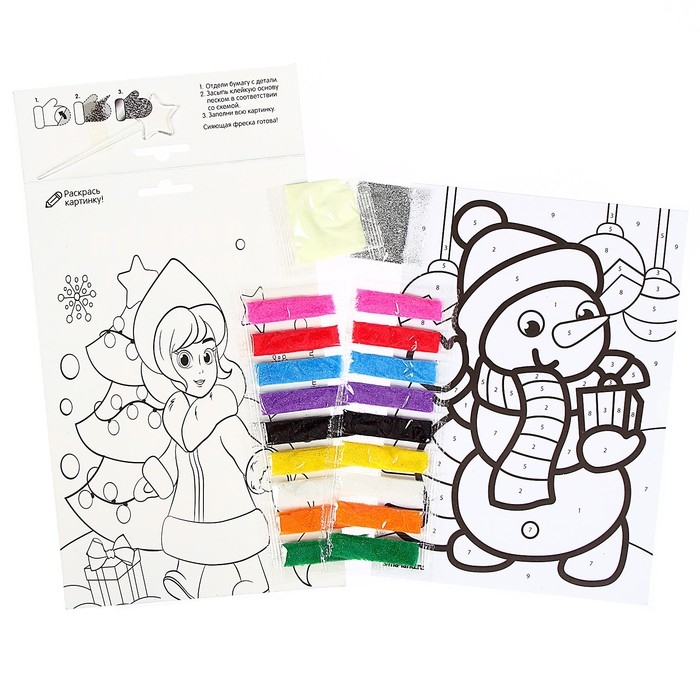 Ваш ребёнок самостоятельно украсит фреску песком и блёстками. Такой шедевр станет отличным подарком для близких людей!