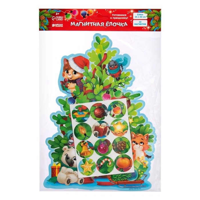 Поместите ёлочку на холодильник или играйте на столе. Попросите малыша украсить ёлку, посчитать игрушки. Используйте магнитные элементы в сюжетно-ролевых играх.