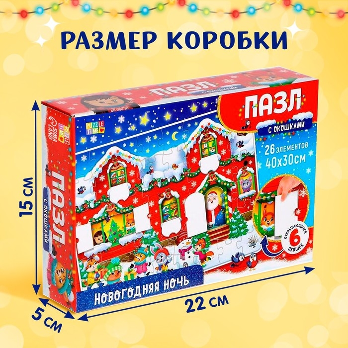 Пазлы с окошками «Новогодняя ночь», 6 окошек, 26 деталей