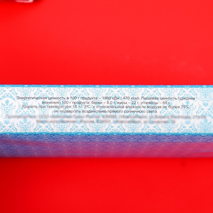 Энергетическая ценность в 100 г продукта – 1980 кДж / 470 ккал. Пищевая ценность (средние значения) 100 г продукта: белки – 6,0 г, жиры – 22 г, углеводы – 68 г.