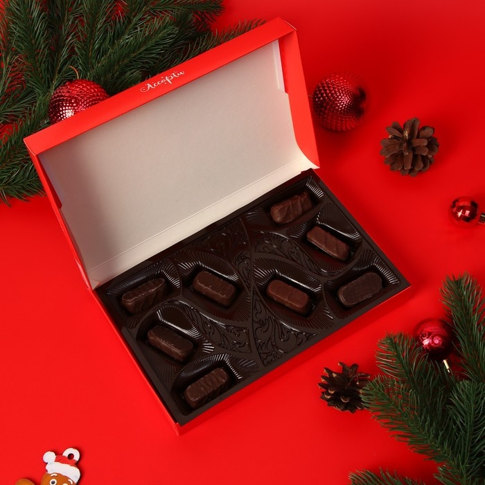 Новый год. Шоколадное ассорти "С новым годом", пенал белый, 125 г
