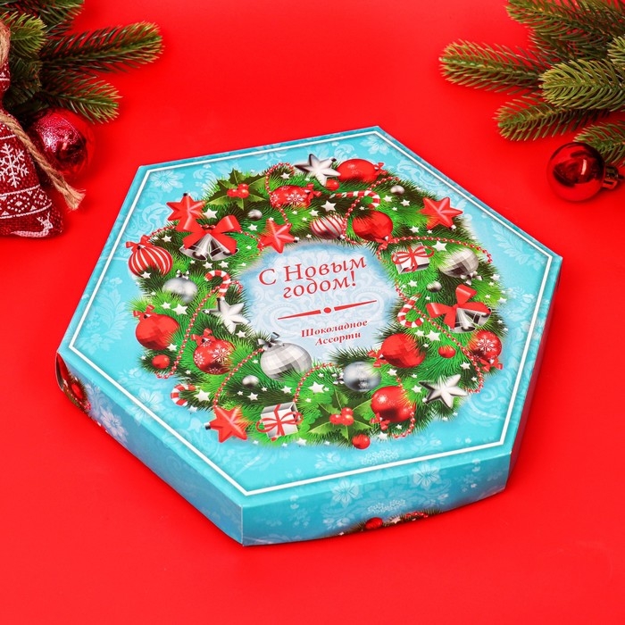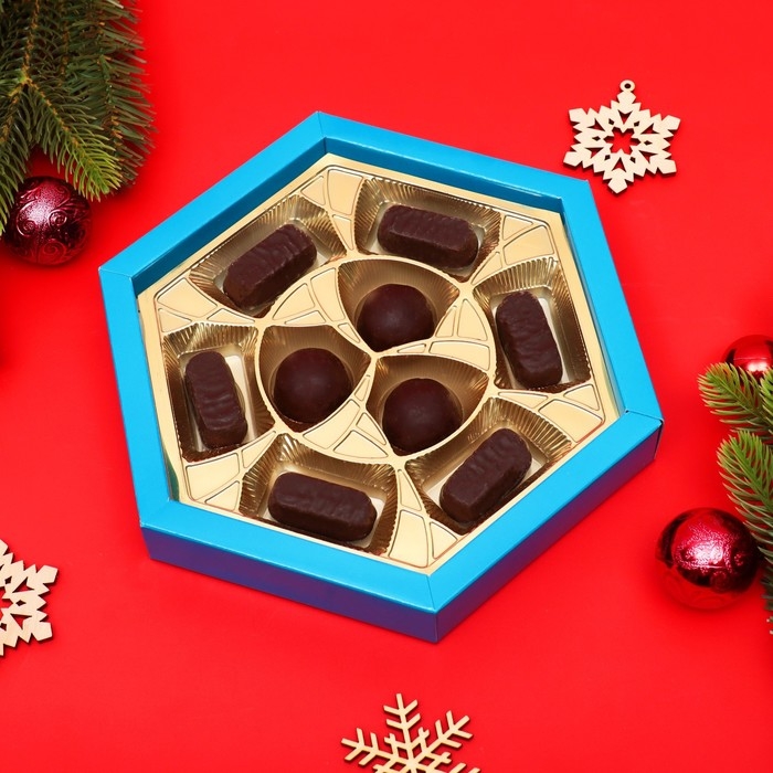 Новый год. Шоколадное ассорти «С новым годом, рождеством», короб голубой, 150 г