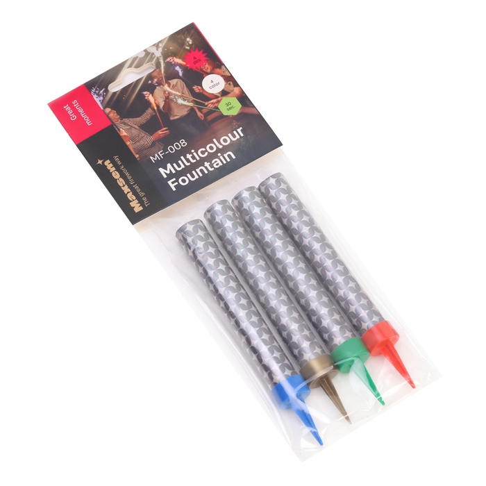Свеча фонтан, 4 шт, 12 см, цветное пламя 40 сек