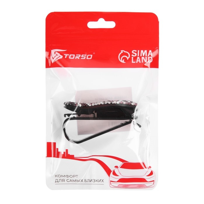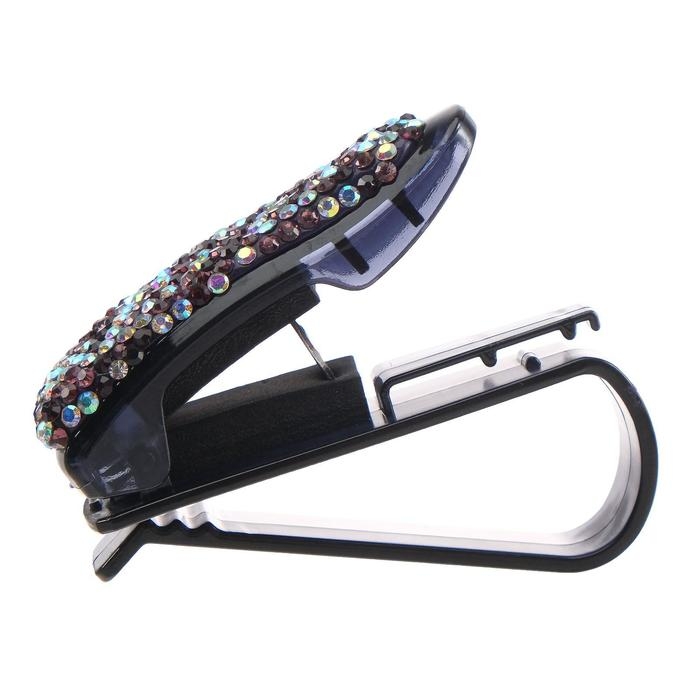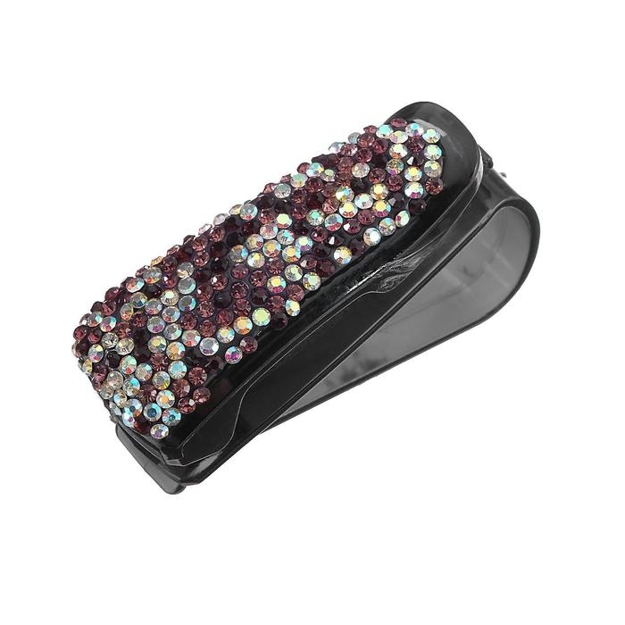Держатель очков зажим с светло-розовыми стразами, чёрный