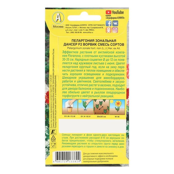 Семена цветов Пеларгония "Дансер Ворвик", смесь окрасок, F2, 5 шт.