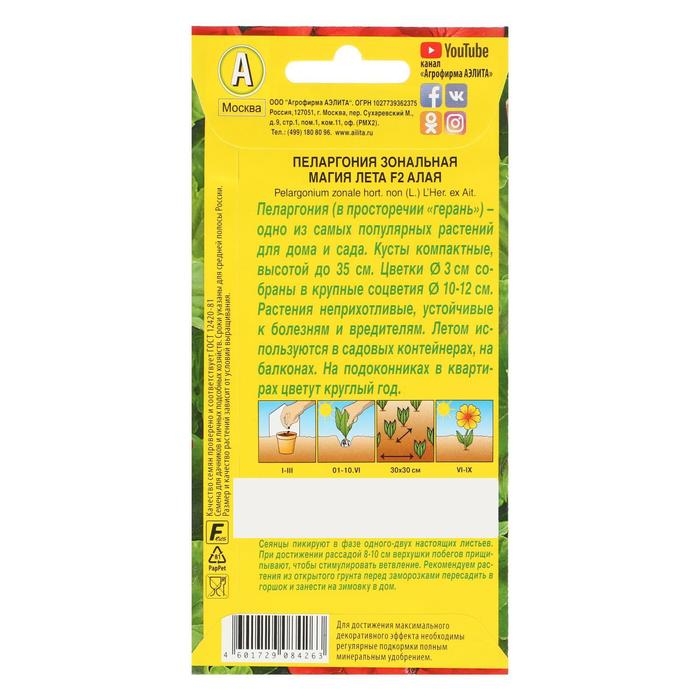 Семена цветов Пеларгония "Магия лета", алая, F2,5 шт.