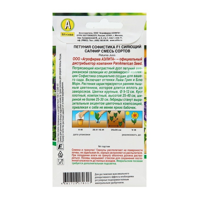 Семена Петуния Софистика Сияющий сапфир F1 4 шт. крупноцветковая, смесь окрасок