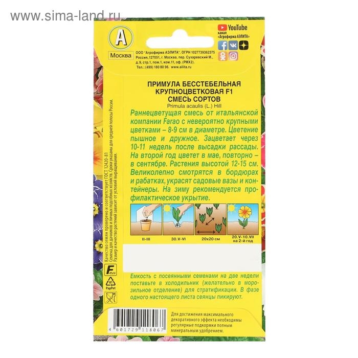 Семена цветов Примула "Раннецветущая", смесь окрасок, F1, 7 шт