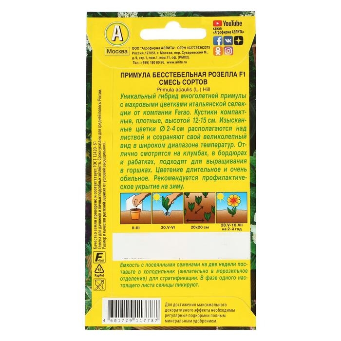 Семена цветов Примула "Розелла", смесь окрасок, F1, 7 шт
