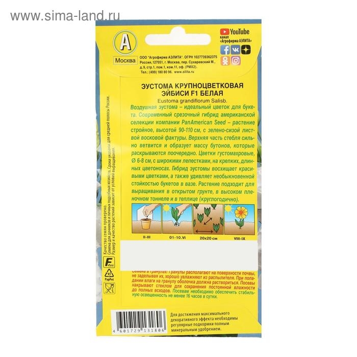 Семена цветов Эустома "Эйбиси", F1 белая крупноцветковая махровая,5 шт.