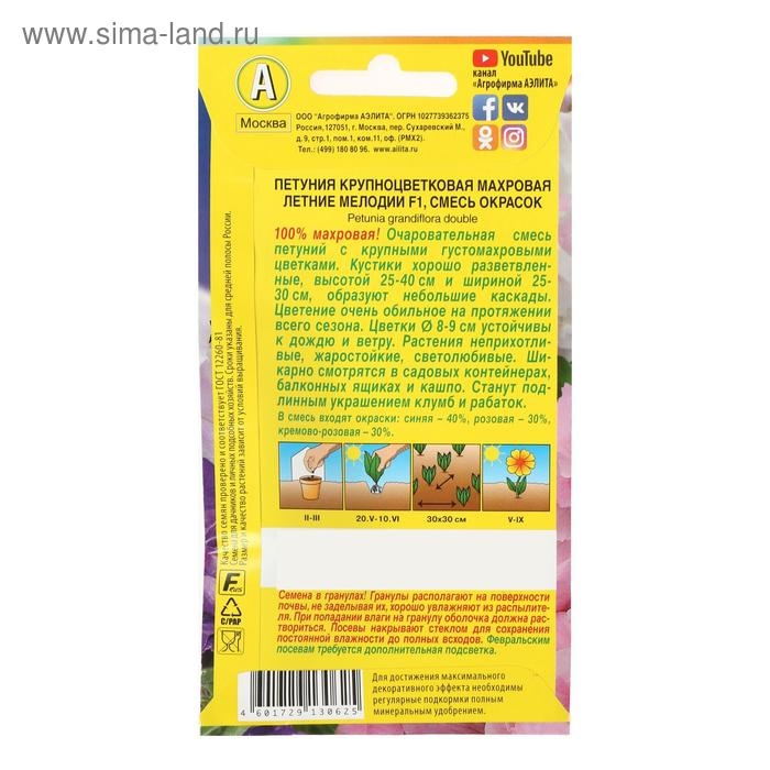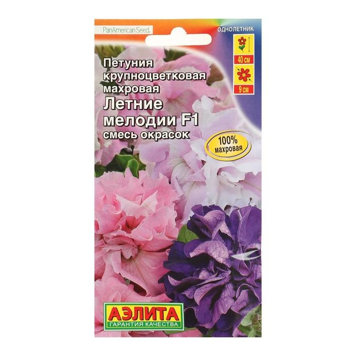 Семена Цветов Петуния Летние мелодии F1 крупноцветковая махровая, смесь окрасок, 5 шт
