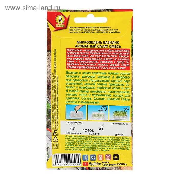 Семена Микрозелень Базилик "Ароматный салат", смесь, 5 г